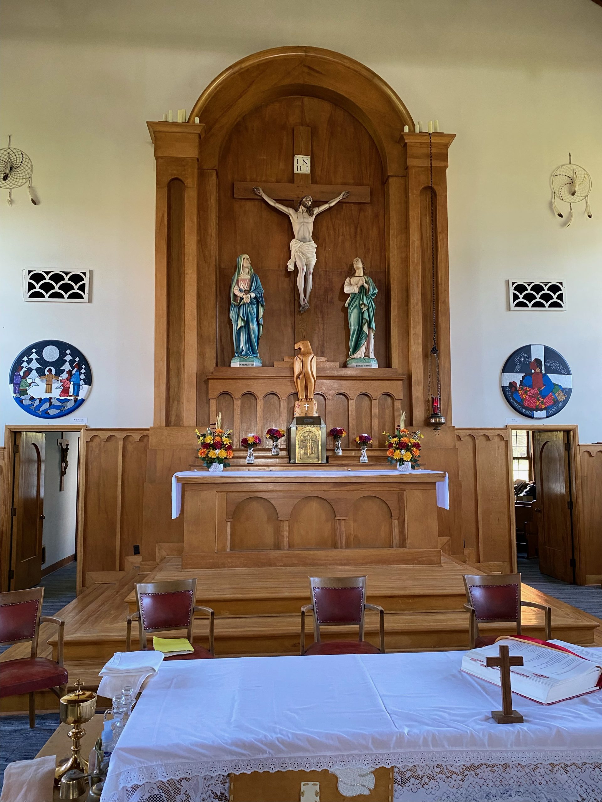 Fr. Dcn. Andrew: Having just been in the church next door here in Wikwemikong, and then also having been to, for example, St. Francis Xavier Mission in Kahnawake, it seems to me like there’s a really good integration of both Catholic belief and how different aspects of Indigenous culture have been brought into the church and welcomed in the church. They see that there are these parallels that exist.