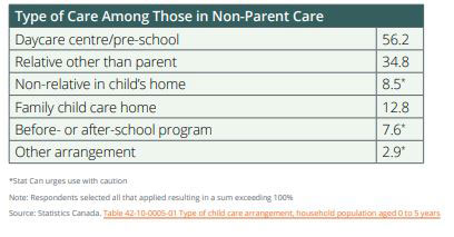 Child care policies should be equitable for all families, regardless of the type of care they choose. Yet child care policy in Canada primarily directs funding towards centre-based care. The recent Statistics Canada Survey on Early Learning and Child Care Arrangements, 2019 and follow up analysis Early Learning and Child Care for Children aged 0 to 5 years: A Provincial/Territorial Portrait show that parents use a variety of arrangements, and the majority of parents receive no benefit when provinces fund centre-based care. BC should take a neutral approach that respects the diverse arrangements parents make for their children.
